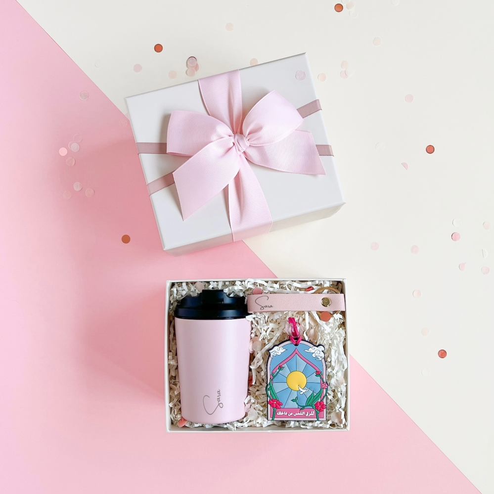 كوب حراري باللون الوردي سعة 8oz مع امكانية كتابة الاسم